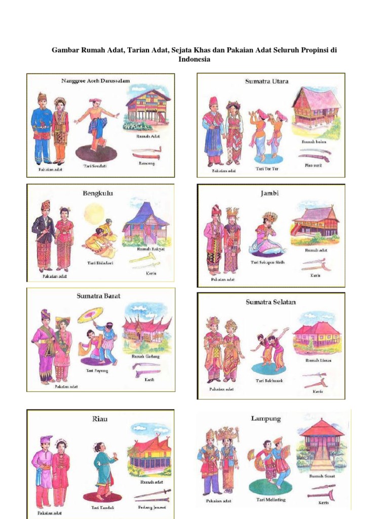 Kliping Tentang 34 Provinsi Di Indonesia Gambaran from imgv2-2-f.scribdassets.com Rumah adat adalah bangunan tempat tinggal yang dibuat oleh salah satu masyarakat adat atau suku tertentu. Indonesia memiliki ragam budaya dan ciri khas di setiap daerahnya. Rumah aceh (rumah adat nanggroe aceh darussalam). Kebanyakan rumah limas memiliki luas 400 sampai 1000 meter2. Kita akan mengupas secara lengkap tentang rumah adat dan asalnya. Salah satunya bisa dilihat dari pakaian adat. Biar kamu lebih tau, berikut ini deretan pakaian adat. 34 provinsi rumah adat pakaian tarian tradisional senjata tradisional lagu bahasa suku julukan di indonesia indonesia sangatlah kaya dengan keaneka ragaman istiadat pun budaya tentu saja hal.